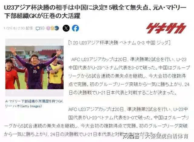进入决赛的两支球队分别是卫冕冠军日本U23队,以及赛事最大黑马中国U23队。