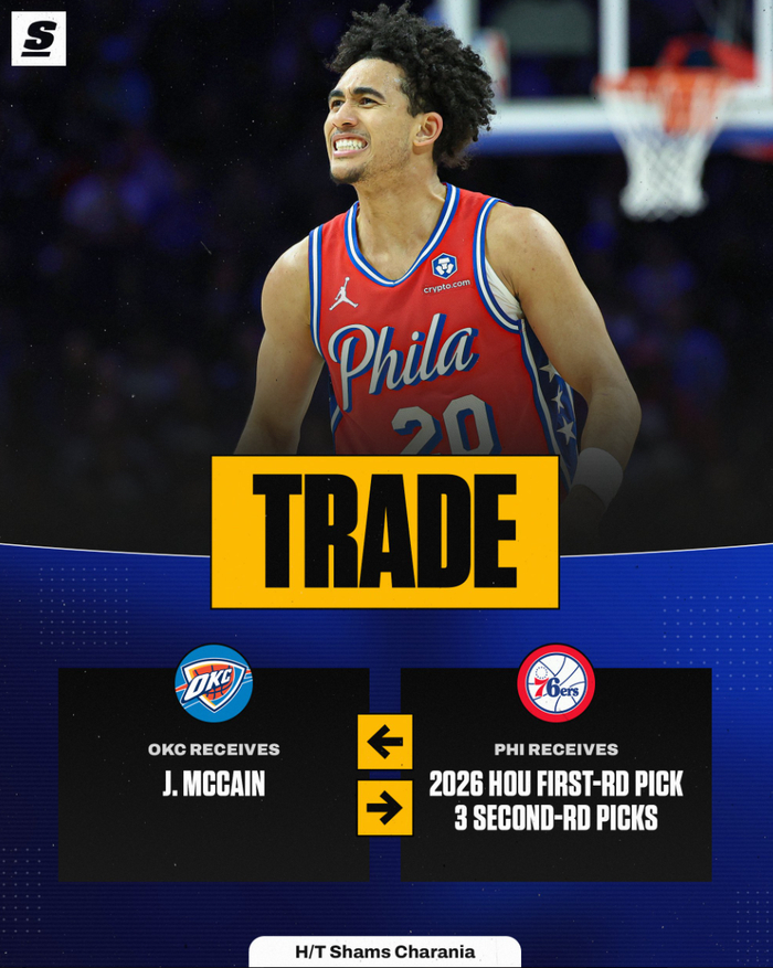 雷霆、费城达成一笔交易,雷霆送出1个首轮签、3个次轮签从费城换到了贾里德-麦凯恩。这笔交易达成后很多雷霆球迷发了多个问号,更有雷蜜对普雷蒂斯进行了炮轰,认为麦凯恩这个遭遇过大伤的小后卫最多只值得1个首轮签。