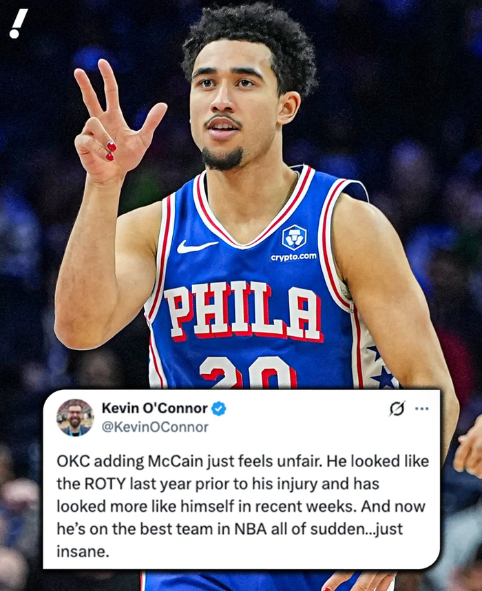 2.26-27赛季麦凯恩只有440万美元的合同,雷霆下赛季奢侈税超过5000万,如果多尔特、哈腾只能二选一,乔/威金斯也只能二选一,那么麦凯恩可以直接进入主力轮换不至于打乱雷霆的轮换;